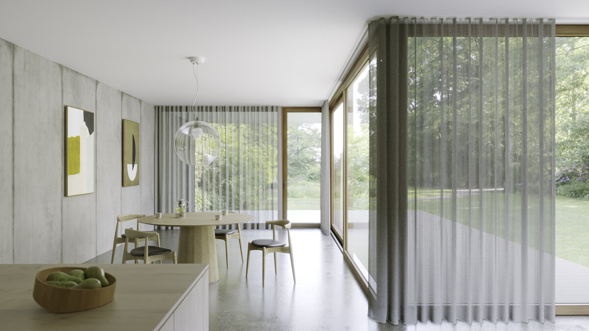 ARISE, die Heimat attraktiver Gegensätze. Der Micro-Bouclé steht für Eleganz mit moderner Sachlichkeit, metallische Farben ohne aufdringlichen Glanz und Transparenz trotz Blickschutz. Eine Ästhetik, die funktioniert: ARISE ist pflegeleicht, waschbar bei 60°C, schwer entflammbar, raumhoch, lichtecht und mit einem Anteil an recyceltem Polyester gut für die Umwelt.
