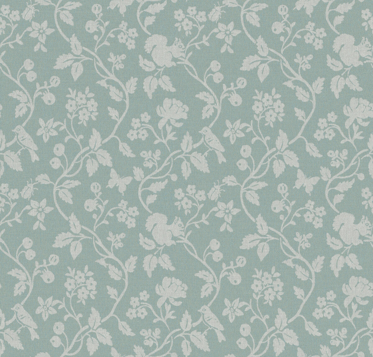 Der Blick in einen verwunschenen Garten scheint sich mit BOSCO zu eröffnen. Blüten und Beeren, Vögel, Insekten und Eichhörnchen gruppieren sich zum beschwingten Allover-Dessin des zweifarbigen Jacquard-Gewebes. Das verzaubert auch mit weichem Fall und frühlingsfrischer Farbpalette.