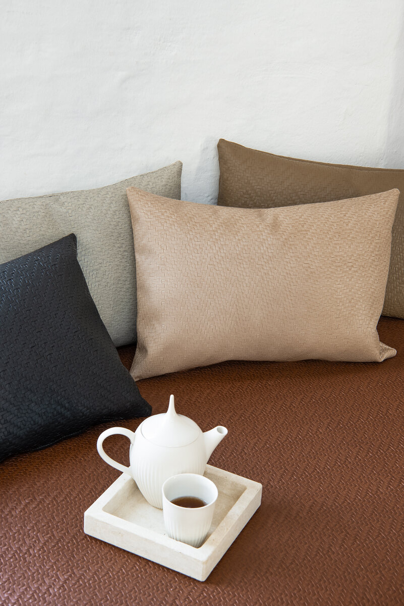 Eyecatching aus jeder Perspektive, strapazierfähig in jeder Hinsicht – das ist CARDIFF. Die tiefgeprägte Flechtstruktur in veganem Leder definiert das Design des Bezugsstoffes. Stark, sein dreidimensionaler Effekt. Angesagt, die Lederfarben in 16 Tönen. Lässig, präsent und hochwertig arrangiert sich der Uni von Vintage bis Minimalismus mit jedem Wohnstil.