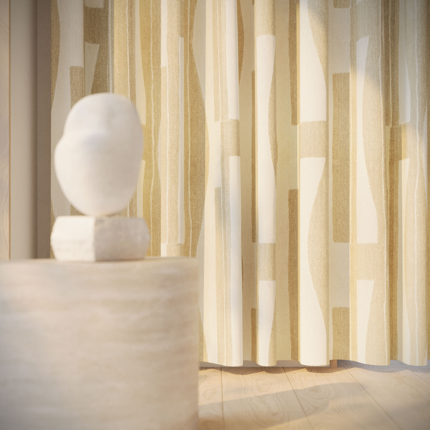 ECHO ist ein Jacquard, der bleibt. Mit seinen raffinierten, unregelmäßigen Fischgrat-Bindungen und den melierten Garnen entsteht ein grafisches Design mit weichen Konturen – elegant, modern und voller Bewegung. Der Leinenanteil sorgt für Natürlichkeit, die Farbgebung für Understatement. Ob in Sand, Leinen oder tiefem Blau – ECHO setzt dezente, eindrucksvolle Akzente im Raum.