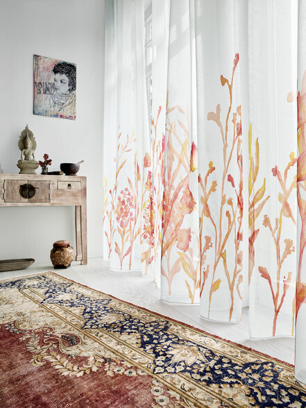 Adrette Silhouette – der Transparentstoff FLOYD offenbart uns sein stürmisches und gleichzeitig friedliches Temperament im Schattenriss-Look. Als Sockeldesign mit natürlichem Charakter brilliert ein traumhaftes Aquarell-Artwork aus Blättern und Ranken in perfektem Digitaldruck. Zwar nicht als Pink FLOYD, aber dafür in Grün, Aqua, Natur und Indian Summer Rot erhältlich.