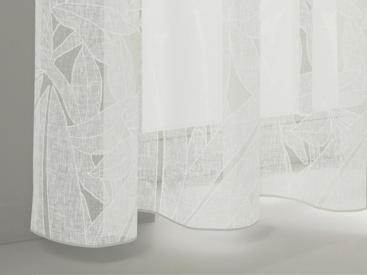 Jungle JOURNEY. Der coole Ausbrenner nimmt dich mit in eine Welt aus großen, dekorativen Blättern und weißen Outlines, die sich nach obenhin geheimnisvoll ins Nichts aufzulösen scheinen. Die dramaturgische Inszenierung der Farben auf dem Sockeldesign lässt keine Wünsche offen. Beruhigung bietet die Kombination mit der dichten Grundware TRAVELLER.