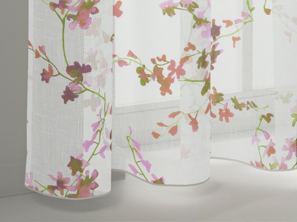 KAY – dezent, modern und edel gemustert. Der Ausbrenner ist ein Mischgewebe aus Polyesterund Viskose-Garnen. Sein Geheimnis: Mit einer Schablone wird nach dem Weben eine Paste auf den Musterfond aufgetragen, welche die Zellulose, hier Viskose, wegätzt. Sein Look and Feel: ein liebliches und inspirierendes Muster mit transparenten und blickdichten Flächen, die mehrmals farbig bedruckt für ein wunderbar wohnliches Hochgefühl sorgt.