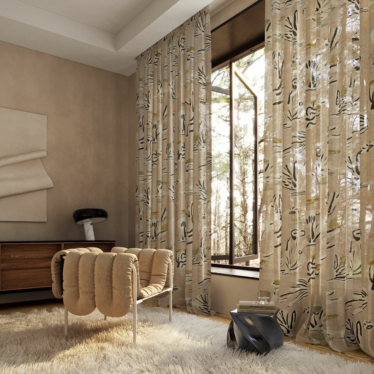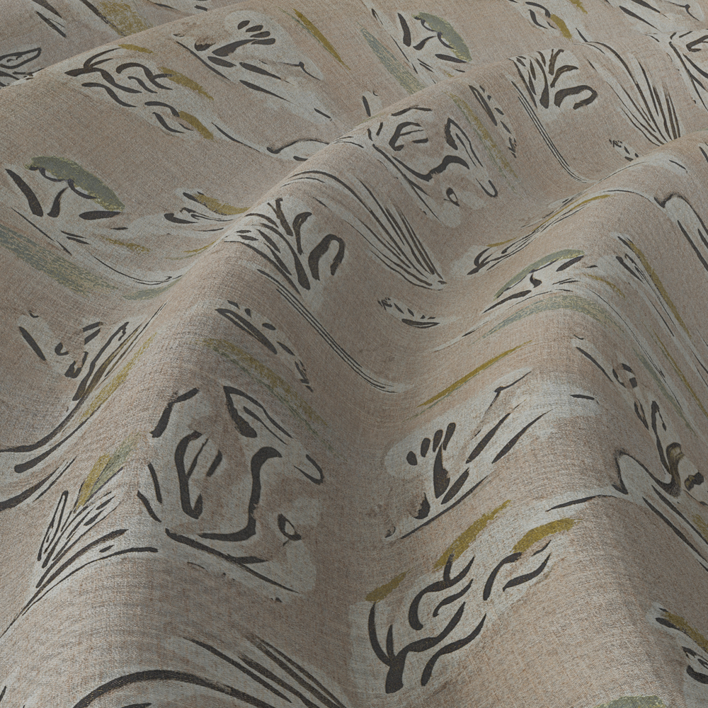 Ein herrlich unaufgeregter Digitaldruck auf einer blickdichten Grundware mit einer Tuschezeichnung und erzählerischer Note. Angelehnt an die Technik des Toile-de-Jouy, finden sich mit Tusche gezeichnete Motive aus der Pflanzenwelt auf einem zarten Fond wieder – von Naturtönen über Rosé bis hin zu Wasserblau. Ein Design, das eine wohltuende Gelassenheit und zarte Frische in jeden Raum ausstrahlt.
