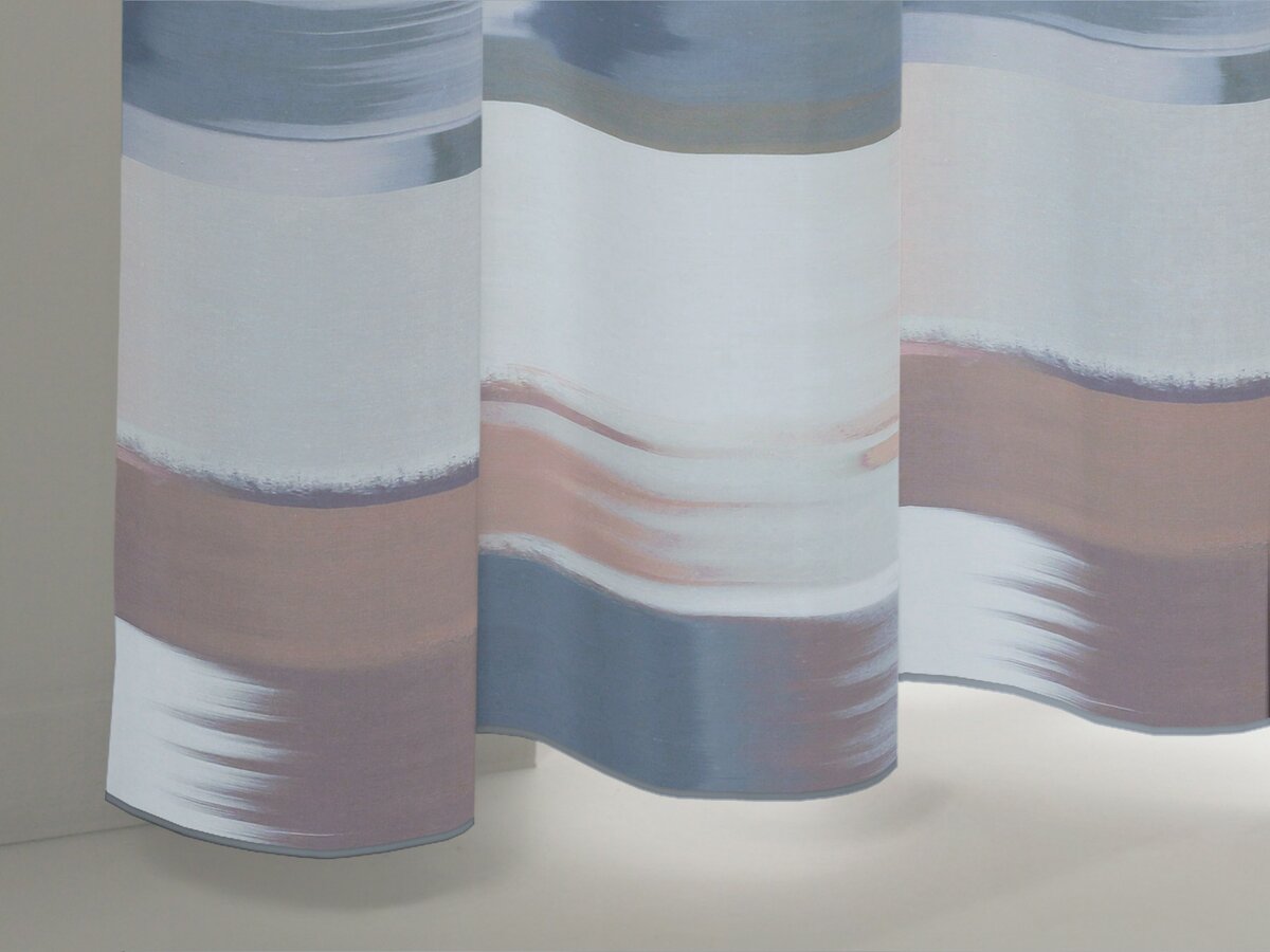 Du bist modern, trendbewusst, farbenfroh und alles andere als langweilig? Dann kommt KIANA ganz nach dir. Je nach Ambiente und Farbgebung erscheint der horizontale Streifendruck mal elegant, mal modern, mal gar mallorquinisch oder asiatisch. Seine Farbvielfalt macht ihn zum harmonischen Partner für jedes Kissen. Seine Farbverläufe erinnern an Batik, Aquarell oder Kettendruck. Hänge dir mit KIANA echte Kunst ans Fenster.