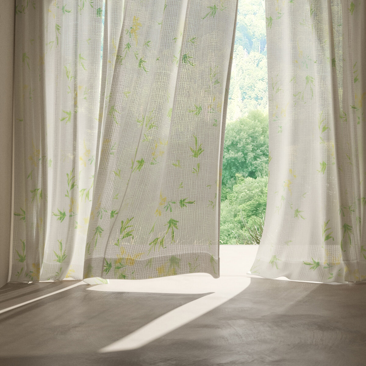 Tanz dich mit LOVELY durch die Blumenwiese. Das Biophilie-inspirierte Design verstreut florale Elemente über einen weißen Fond. Ein klassisches Aquarell, modern interpretiert. Naturbetonte Farben wie Apricot Rose, Zartgelb und Veilchenblau definieren den sanften Blumendruck. Lovely Highlight: Der locker gewebte, zeitgenössische Webstreifen des Druckfonds (Artikel SUMMER aus F23) erzeugt im Gegenlicht romantische Lichtspiele.