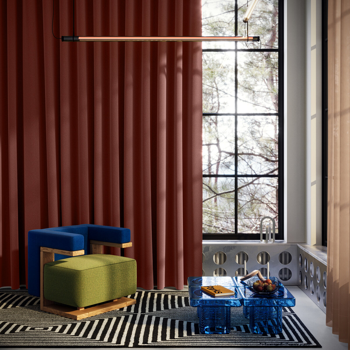 Mit seinen Farben, von neutral bis ausdrucksstark, ist er wie gemacht für stilvolle Hotels, hochwertige Wohnbereiche oder moderne Office-Zonen. Schwer entflammbar, waschbar und optional mit Beschwerungsband, ein echtes Multitalent mit luxuriösem Auftritt.