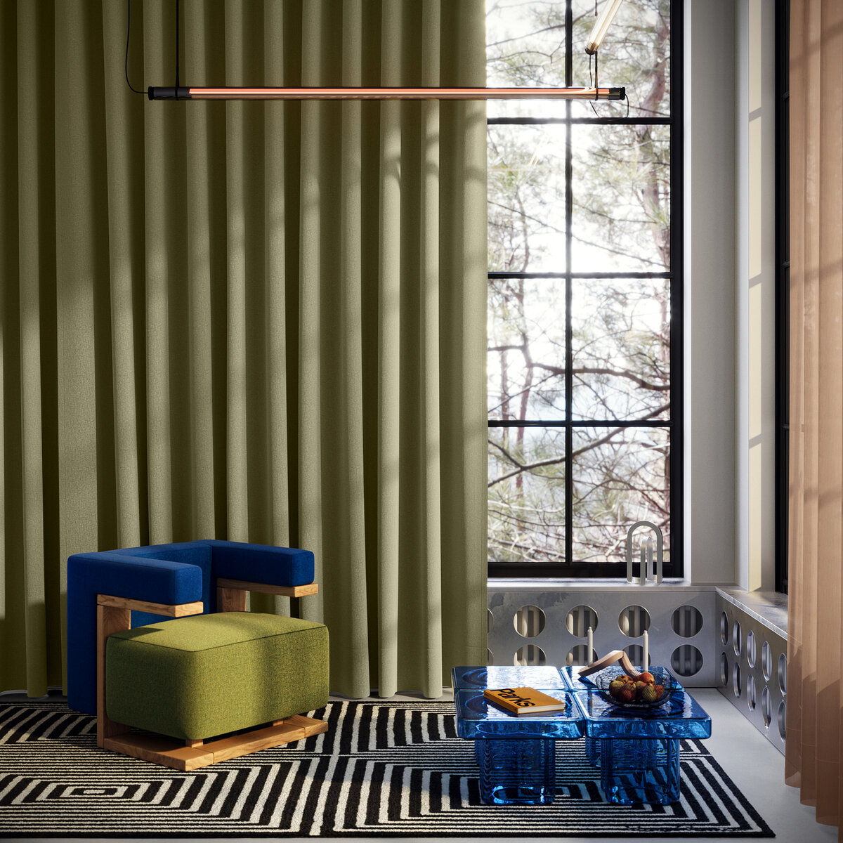 Mit seinen Farben, von neutral bis ausdrucksstark, ist er wie gemacht für stilvolle Hotels, hochwertige Wohnbereiche oder moderne Office-Zonen. Schwer entflammbar, waschbar und optional mit Beschwerungsband, ein echtes Multitalent mit luxuriösem Auftritt.
