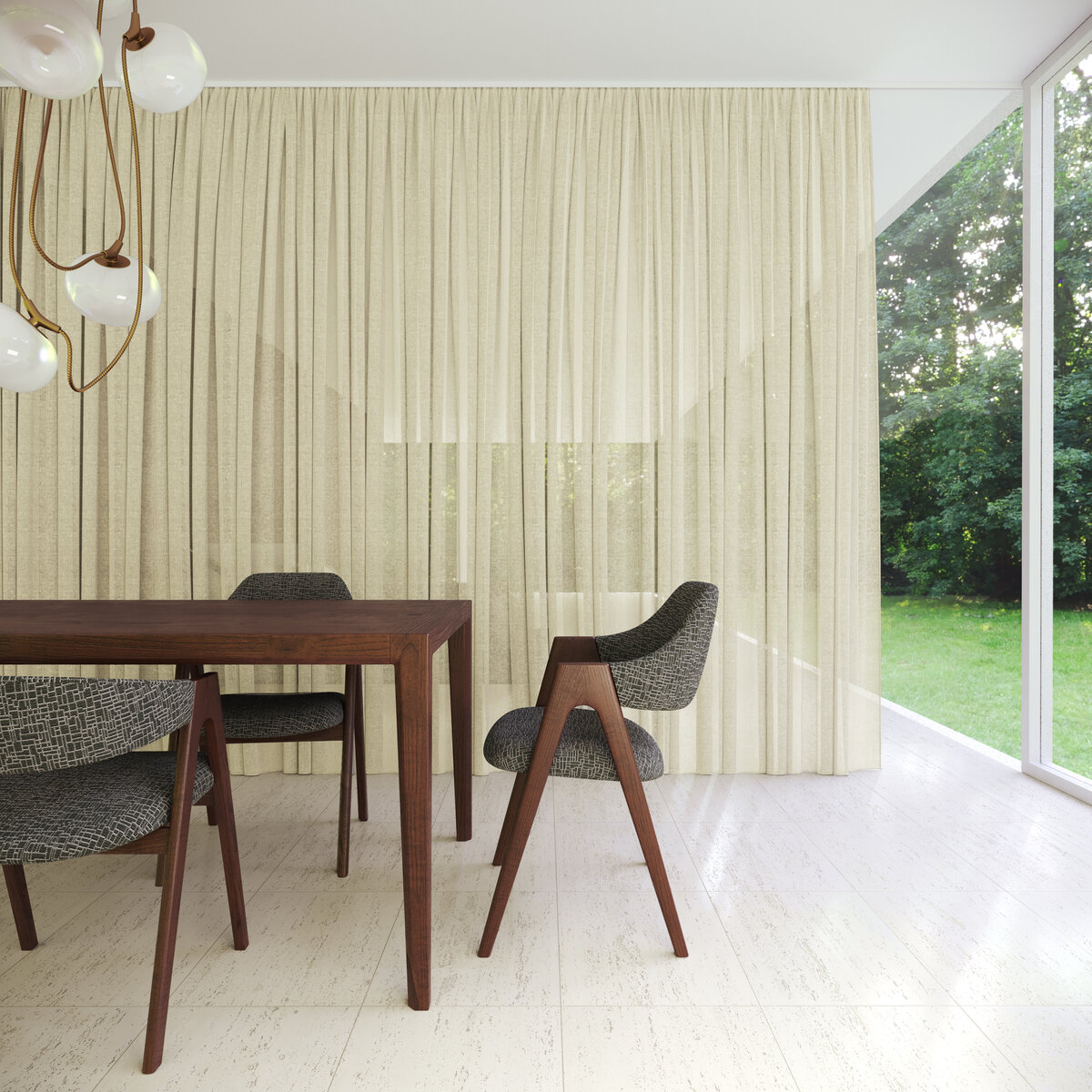 Lässig, funktional, nachhaltig. NEVA erzeugt eine wohnliche Atmosphäre, schenkt Privatsphäre und ist durch ihre lange Lebensdauer per se ein nachhaltiges Textil. Der Anteil recycelter Synthetik verbessert nochmals die Nachhaltigkeit der pflegeleichten und schwer entflammbaren Gardine. Zehn entspannte Farben passen zu jedem Wohnstil, Geschmack und guten Gewissen.