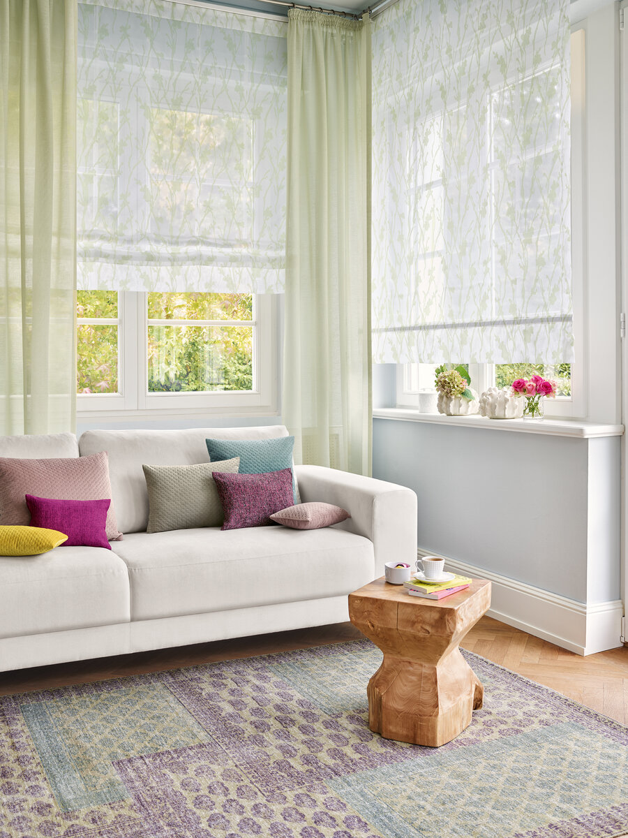 ORIANA weckt dich und deine Sinne. Das moderne Landhausfeeling gibt es mit guter Laune in 5 frischen Farbvarianten von Gletscherweiß, Sand und Seidengrau bis zu Aquamarin und Pistaziengrün. Unterschiedlich starke Garne und Schnittfransen setzen das Allover-Rankenmotiv mit abstrakten Blüten und Blättern effektvoll in Szene. Allover schön!