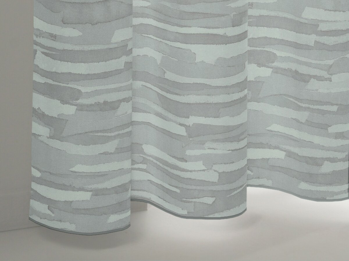 PER belebt dein Zuhause mit Dynamik. Sein plakatives, horizontal geflecktes Design erinnert in Blautönen an rauschende Wellen, wird in erdigen Tönen zur Natursteinmauer, in weiß zur Winterlandschaft. Ein chamäleonartiger Charakter mit beständigen Eigenschaften: ob weicher Griff, Pflegleichtigkeit, schwere Entflammbarkeit, thermische Funktionen oder Abdunklungseffekt.