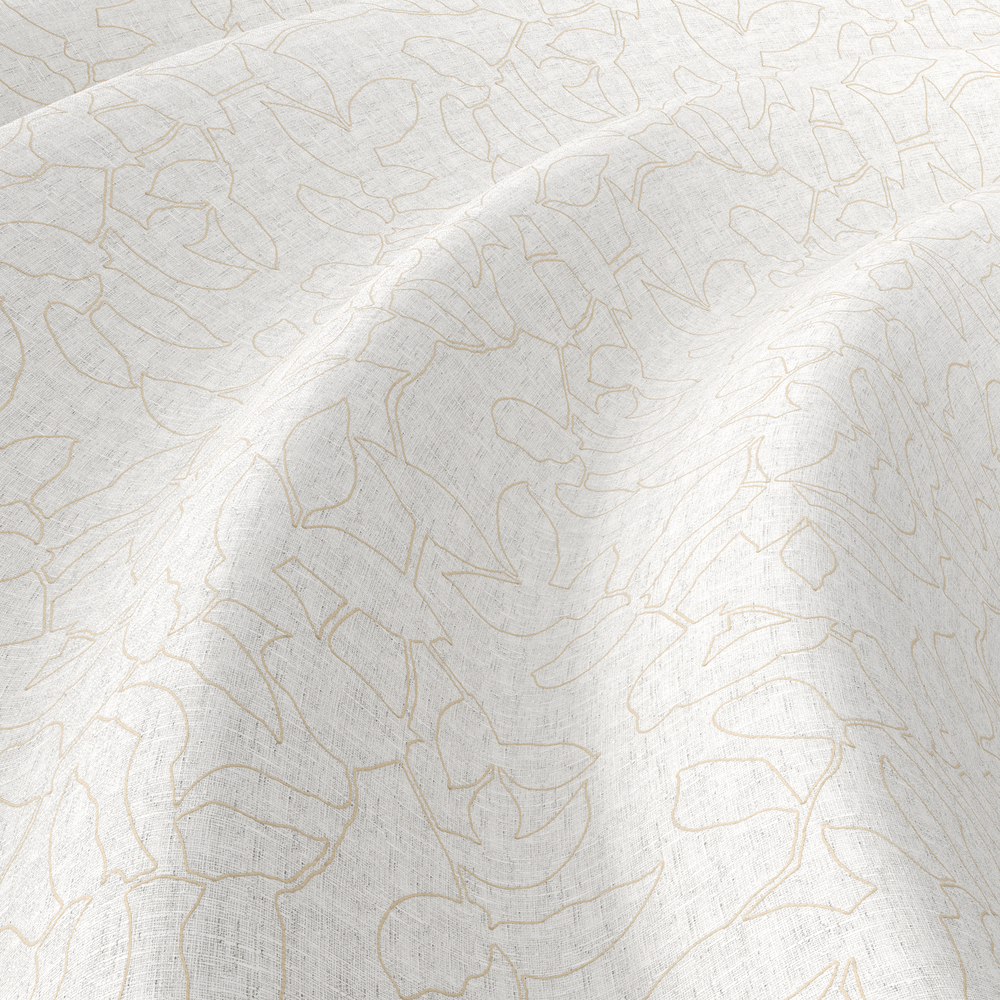 PIANO RE ist ein Stoff mit Tiefgang und Taktgefühl. Zart gezeichnete Blätter entfalten sich wie ein musikalisches Thema über einer fein strukturierten Fläche. Feine Outlines formen ein filigranes Blättermotiv auf einem texturierten Fond. Der raffinierte Schaumdruck verleiht dem Design eine Anmutung wie von Hand gestickt – fast zu schön, um wahr zu sein, und doch absolut alltagstauglich.