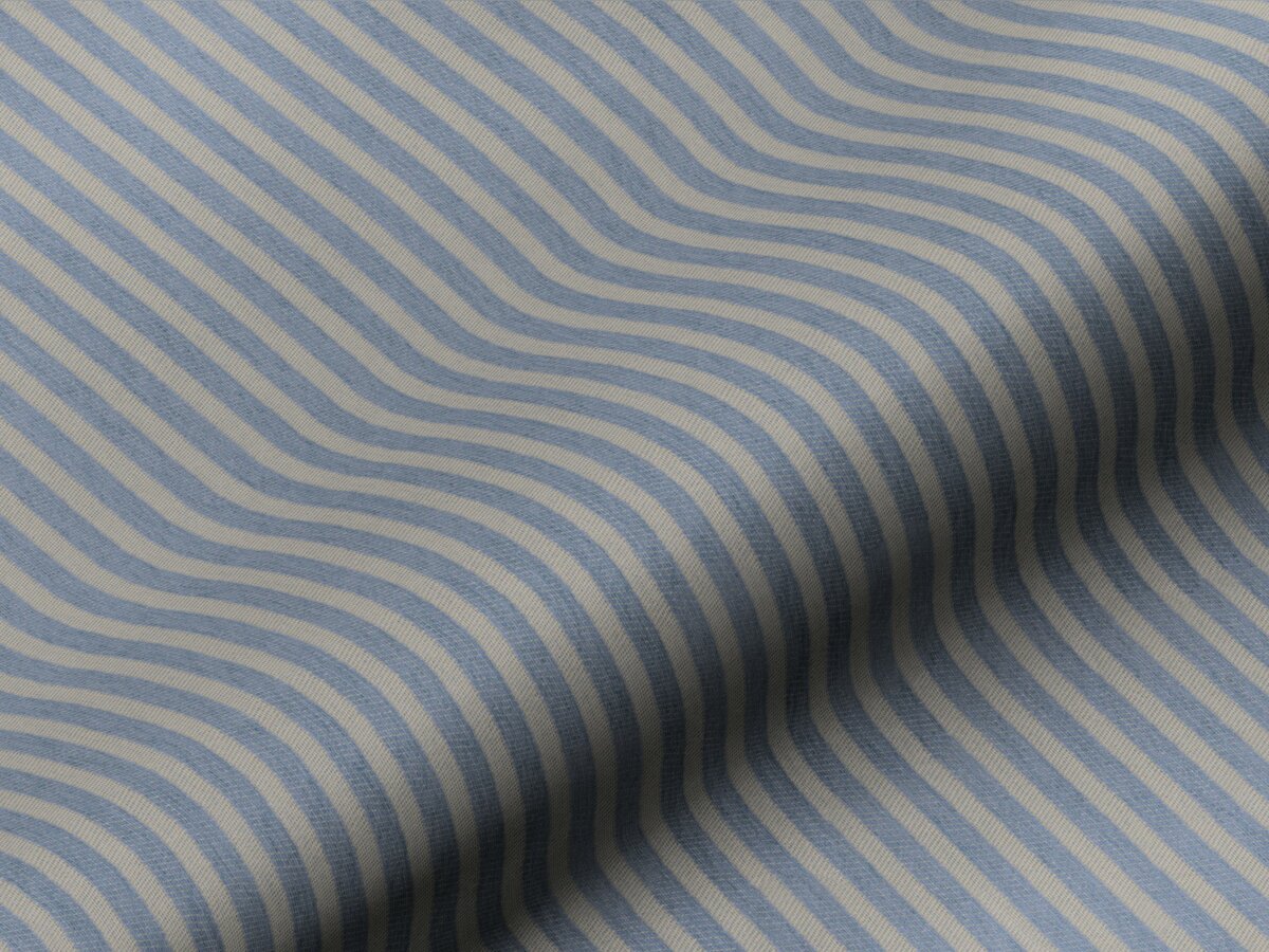 Das regelmäßige, schlanke Streifendessin erhält durch die körnige Struktur und das softe Chenille-Garn seine besondere Ausstrahlung. Diese kommt auf Stuhl, Eckbank und Pouf genauso gut zur Geltung wie als Kissen.