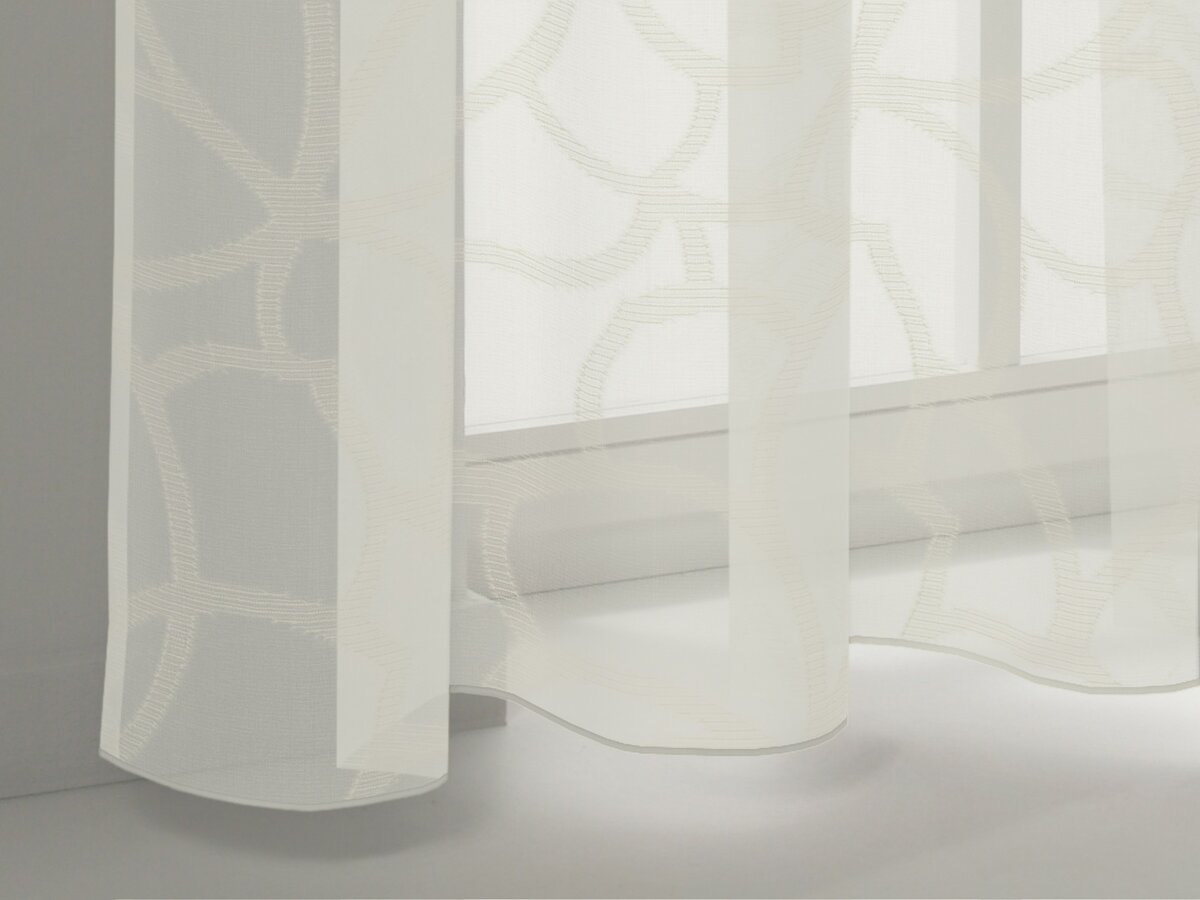 Der weich fließende Transparentstoff trägt mit seinem Allover-Muster aus abstrahierten Blüten- und Blattmotiven in Scherli-Technik den Charme des ländlichen Bauerngartens ins Haus. Wahlweise in vier Farbnuancen.