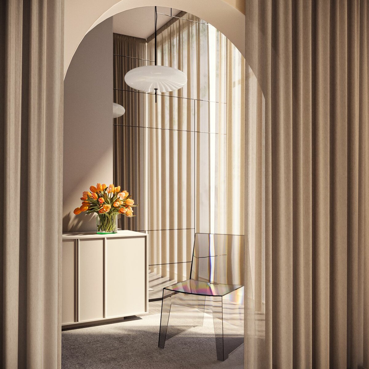 Silky Sorbet begeistert mit einer leichten, transparenten Struktur und einer charmanten, crash-ähnlichen Optik, die Bewegung und Natürlichkeit in jeden Raum bringt. Ideal zum legeren Drapieren und lässig mit aufliegendem Saum. Fließend und fein, mit einem zarten, femininen Auftritt, bleibt es mit Silky Sorbet unprätentiös und modern im Look. Mit recycelten Fasern gefertigt und in schönen Sorbet-Farben erhältlich, verbindet Silky Sorbet Nachhaltigkeit mit stilvoller Zurückhaltung.