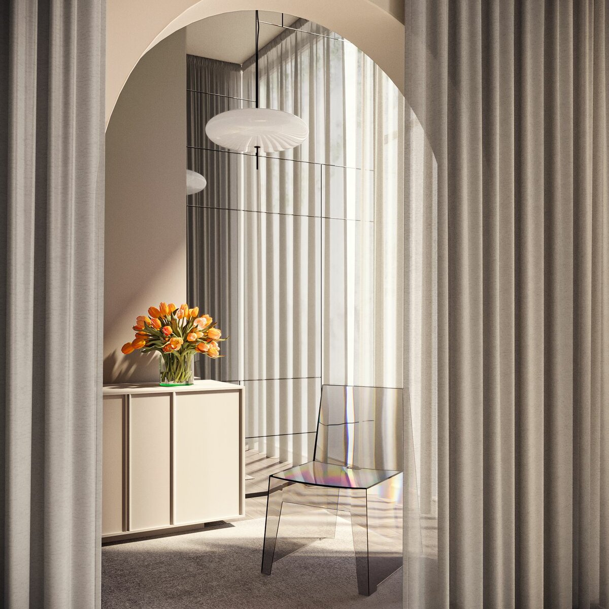 Silky Sorbet begeistert mit einer leichten, transparenten Struktur und einer charmanten, crash-ähnlichen Optik, die Bewegung und Natürlichkeit in jeden Raum bringt. Ideal zum legeren Drapieren und lässig mit aufliegendem Saum. Fließend und fein, mit einem zarten, femininen Auftritt, bleibt es mit Silky Sorbet unprätentiös und modern im Look. Mit recycelten Fasern gefertigt und in schönen Sorbet-Farben erhältlich, verbindet Silky Sorbet Nachhaltigkeit mit stilvoller Zurückhaltung.