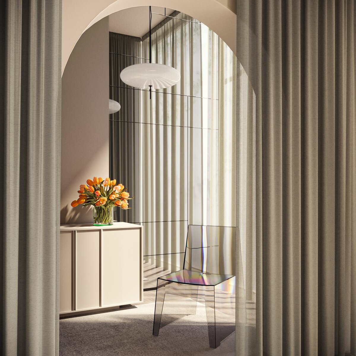 Silky Sorbet begeistert mit einer leichten, transparenten Struktur und einer charmanten, crash-ähnlichen Optik, die Bewegung und Natürlichkeit in jeden Raum bringt. Ideal zum legeren Drapieren und lässig mit aufliegendem Saum. Fließend und fein, mit einem zarten, femininen Auftritt, bleibt es mit Silky Sorbet unprätentiös und modern im Look. Mit recycelten Fasern gefertigt und in schönen Sorbet-Farben erhältlich, verbindet Silky Sorbet Nachhaltigkeit mit stilvoller Zurückhaltung.