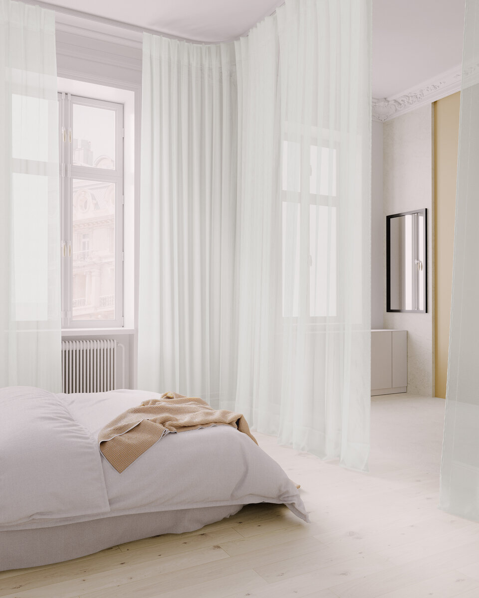 SKYE, dein Himmel auf Erden, wenn es um transparentes Gewebe geht. Hauchzart, superleicht und hochtransluzent. Der Name stammt von der spektakulären „Isle of Skye“ in Schottland. Die sommerliche Brise aus Stoff kommt mit einer Wucht an Natürlichkeit und sinnlicher Haptik.