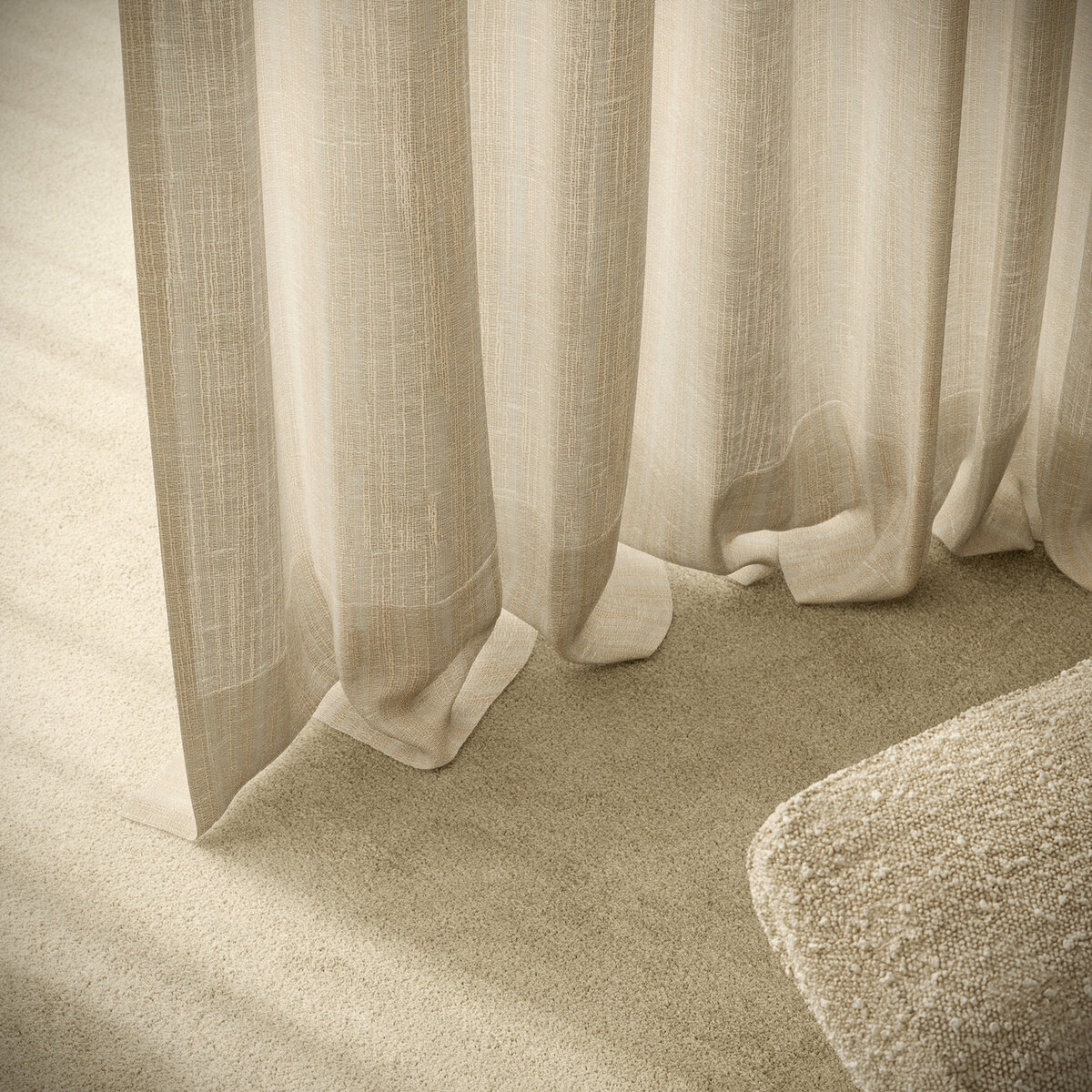 Sein nachhaltiger Materialmix aus 50 % recyceltem PES macht ihn zur umweltbewussten Wahl. Die große Farbpalette von zarten Naturtönen bis hin zu warmen Akzenten lässt viel Raum für individuelle Inszenierung.