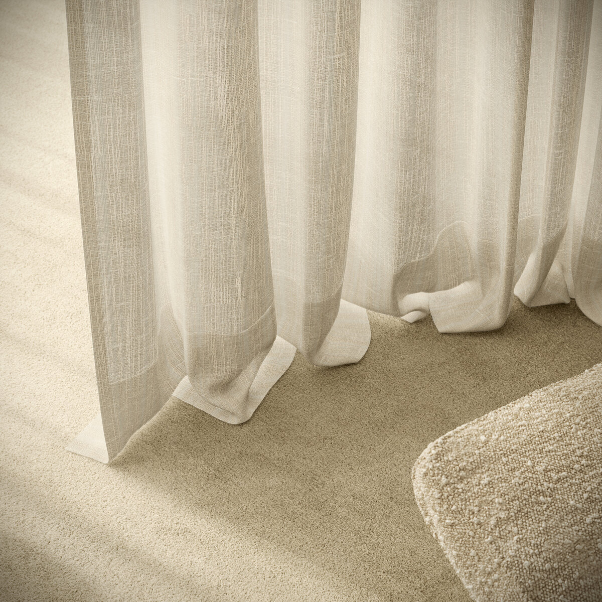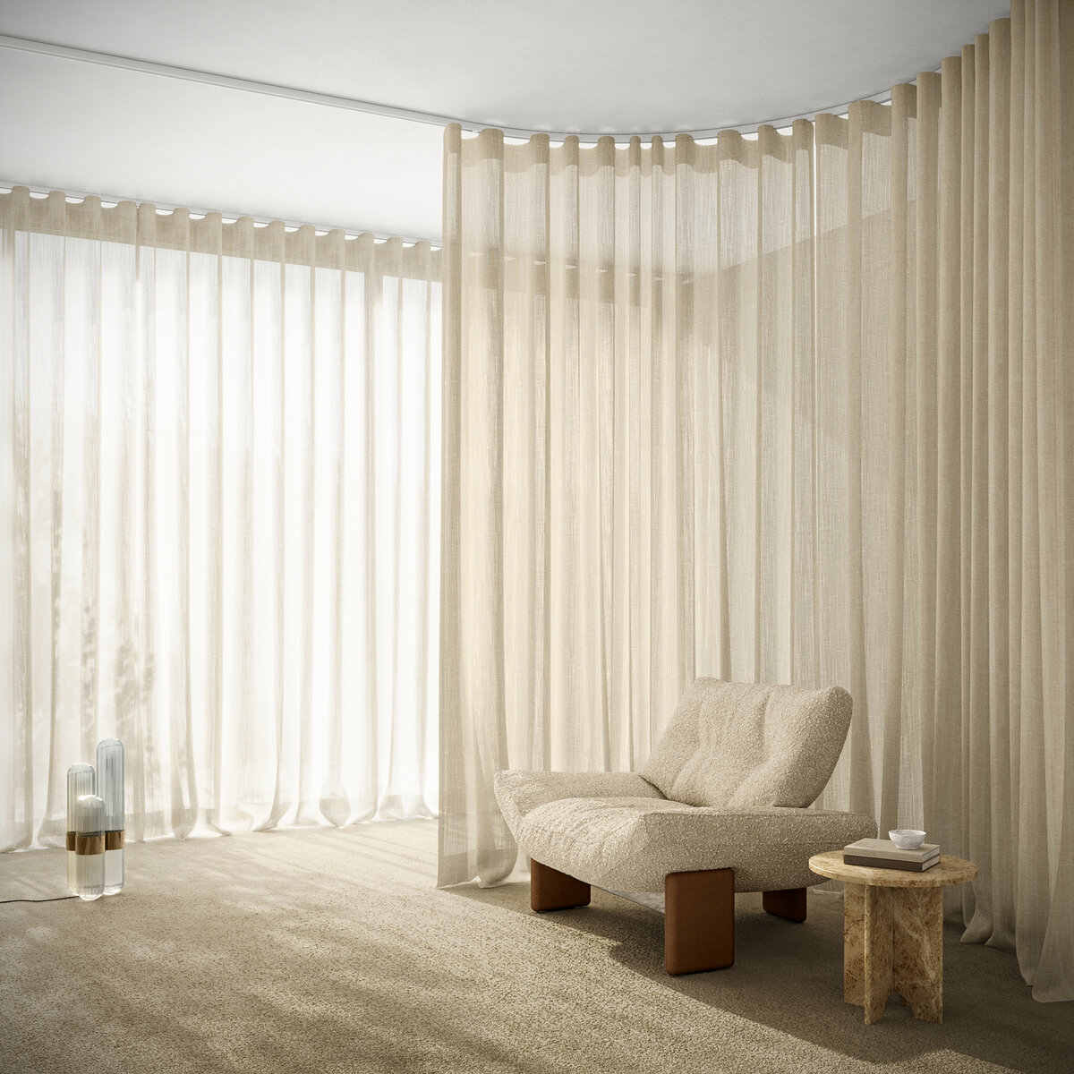 Sein nachhaltiger Materialmix aus 50 % recyceltem PES macht ihn zur umweltbewussten Wahl. Die große Farbpalette von zarten Naturtönen bis hin zu warmen Akzenten lässt viel Raum für individuelle Inszenierung.