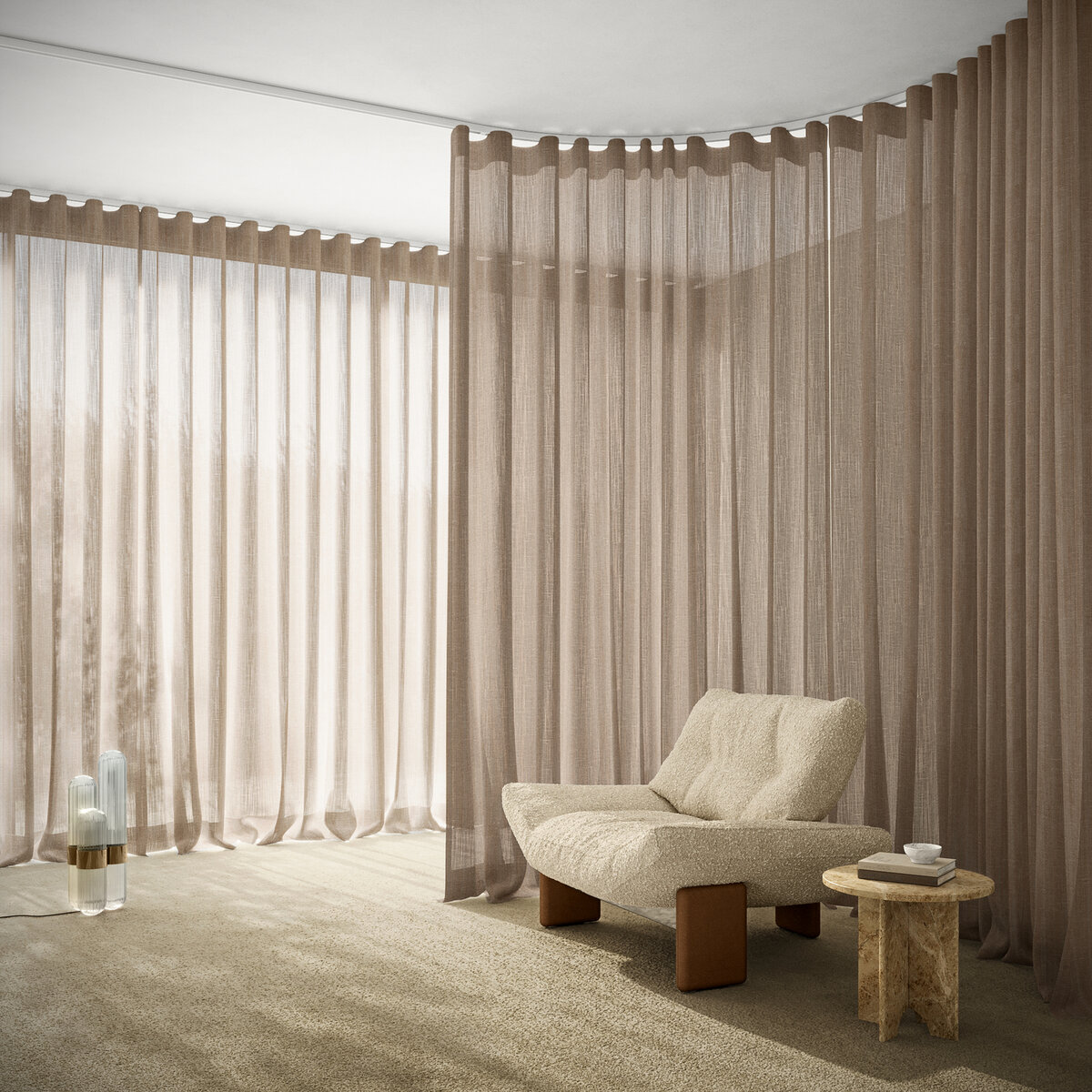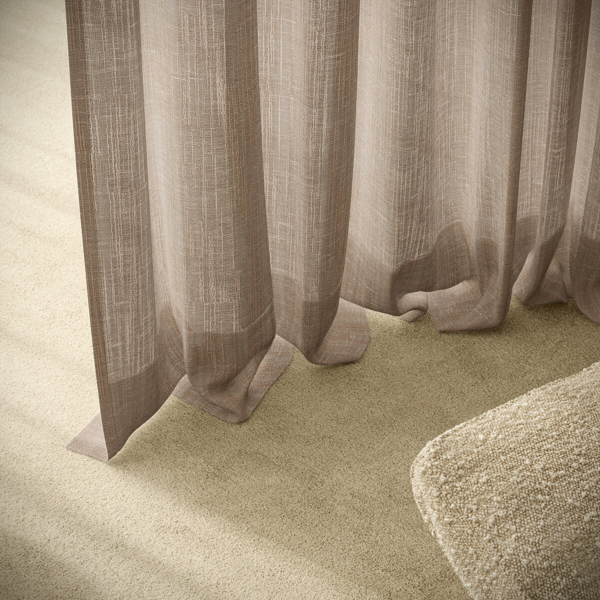 Sein nachhaltiger Materialmix aus 50 % recyceltem PES macht ihn zur umweltbewussten Wahl. Die große Farbpalette von zarten Naturtönen bis hin zu warmen Akzenten lässt viel Raum für individuelle Inszenierung.