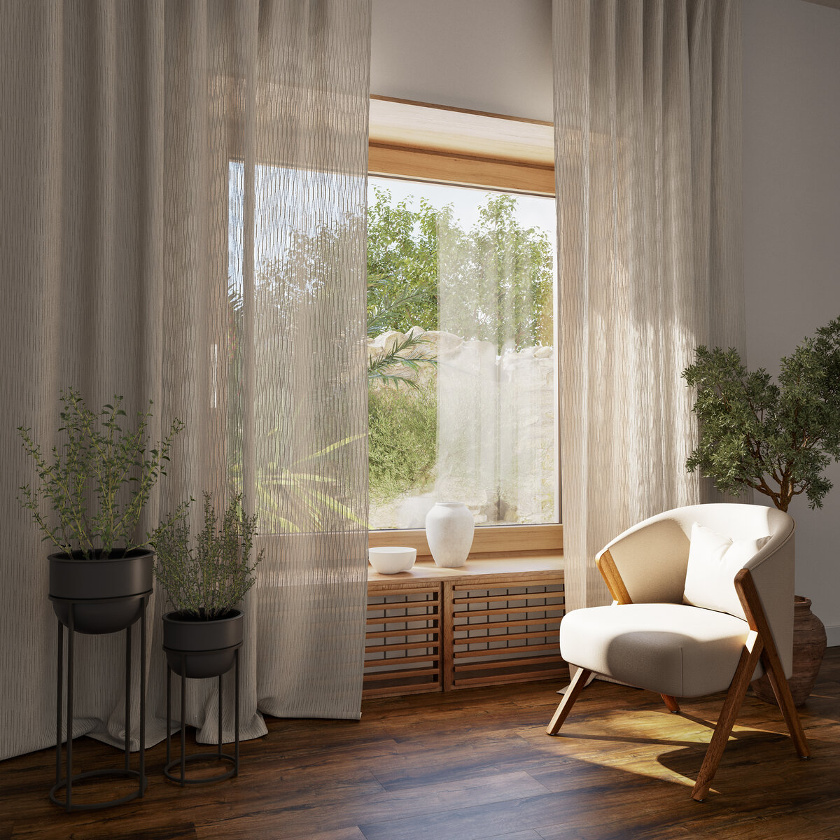 TALA kommt aus dem arabischen und heißt Palme. So interpretieren die wellenförmigen, dreidimensionalen Effekte des gleichnamigen halbtransparenten Stoffes nicht zufällig die Oberfläche eines Palmenstamms. Der schöne Faux-unis weiß aber auch darüber hinaus zu glänzen: mit Understatement in drei trendigen Farben.