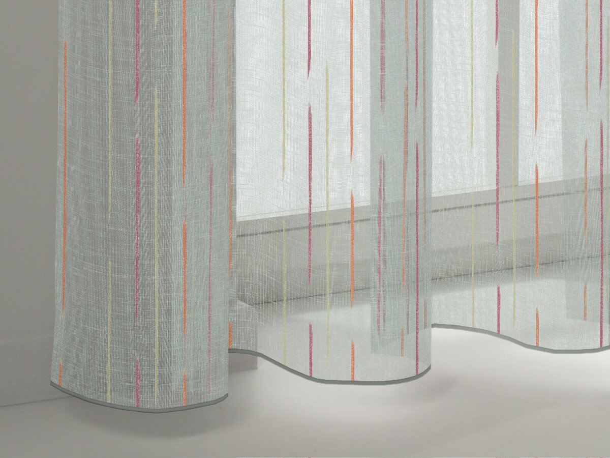TINY kommt an jedem Fenster groß raus. Die an Halme erinnernden zarten und vertikal unterbrochenen Linien wirken wie ein bunter Streifzug durch die Natur. Angenehm in Griff und Fall erstrahlt die strukturierte Grundware in einem lebendigen Farbspiel aus Grün Kid, Weiß Creme, Beige Kid, Rot Orange und Blau Natur.