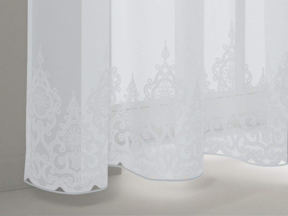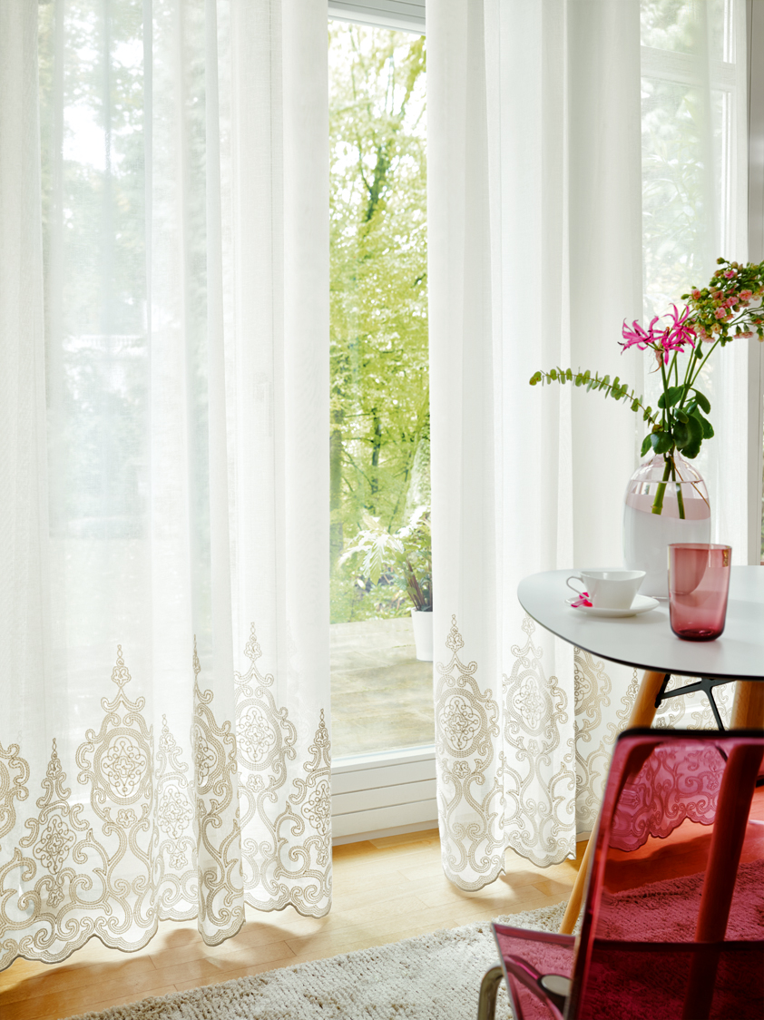 The linen-like base of this elaborate inbe-tween creates an appealing contrast with the romantic border embroidery and the playful scalloped hem. This delicate piece, laden with rural nostalgia, is available in three subtle, natural colours.