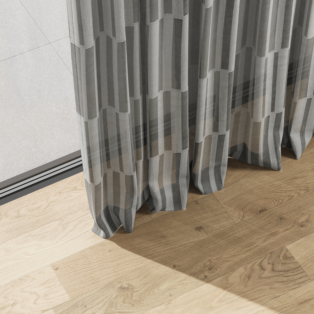 Anis features rhythmic stripes in various widths, creating a dynamic geometric design. Open-cut edges and three-dimensional effects bring this fabric to life. With extra height and easy-care polyester, Anis is ideal for versatile and creative interior design.