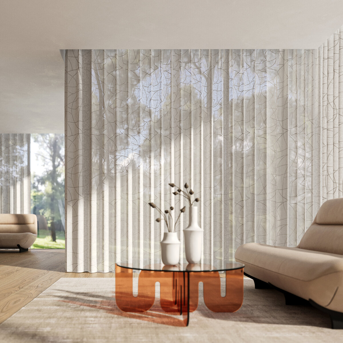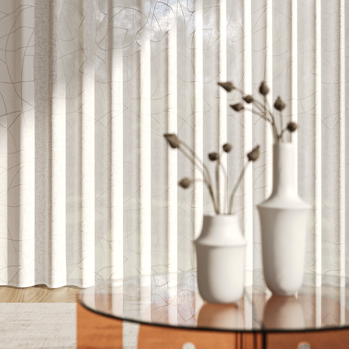 The subtle embroidery on the ARCS fabric is only apparent at second glance, but you will fall in love with it at first sight! Contoured stitching inspired by curved leaf veins creates a signature look against the natural base fabric of cotton and polyester. Two delicate, timeless colorways enhance the effect in tone-on-tone wool white and warm hazelnut. Our tip for you: Beautiful in large windows overlooking greenery, ARCS’ transparency softens trees, plants, and meadows, allowing them to blend organically into the design of the fabric.