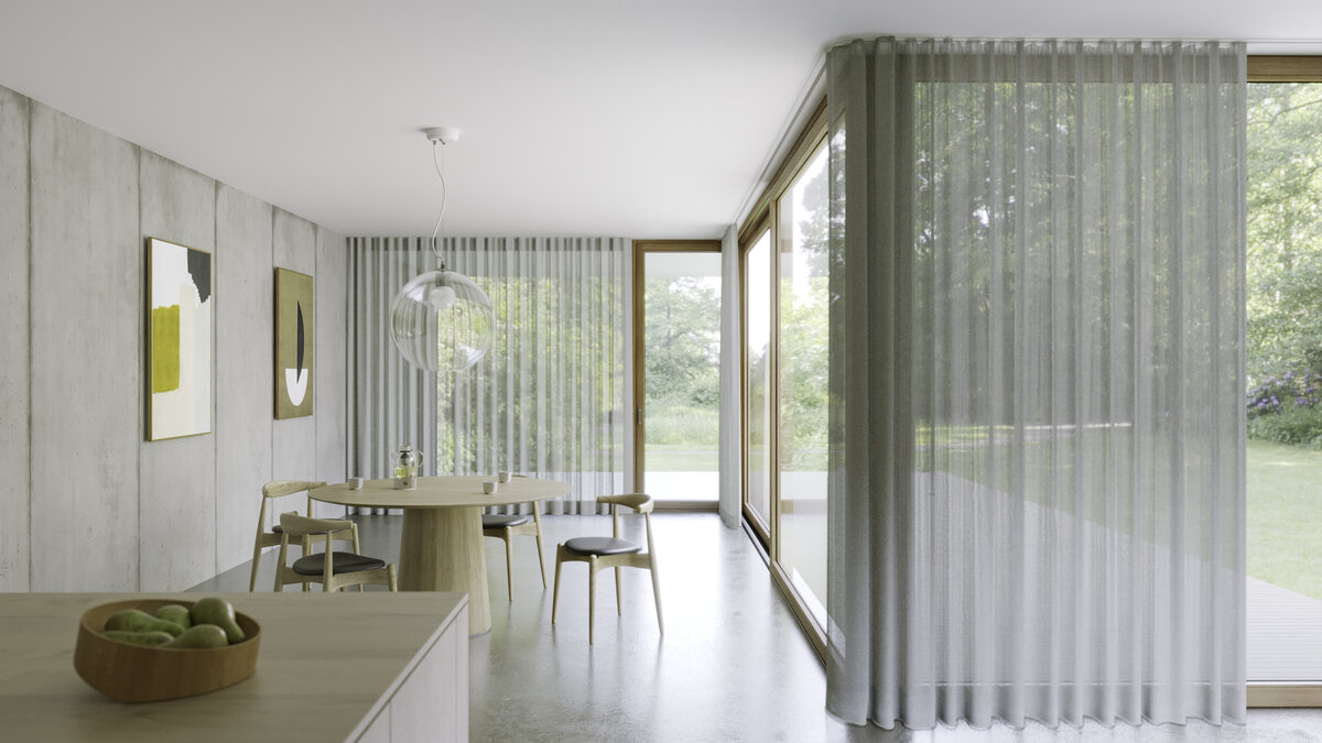 ARISE is proof that opposites do attract. The microbouclé represents elegance with modern restraint, metallic hues without over-the-top shine, providing transparency while also maintaining privacy. It’s an aesthetic that works: ARISE is easy to care for, washable at 60°C, flame retardant, floor length, lightfast and good for the environment with added recycled polyester.