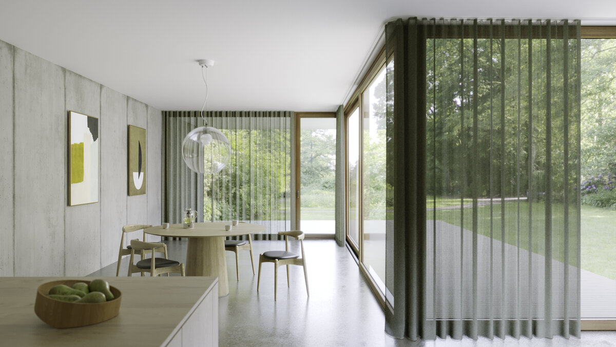 ARISE is proof that opposites do attract. The microbouclé represents elegance with modern restraint, metallic hues without over-the-top shine, providing transparency while also maintaining privacy. It’s an aesthetic that works: ARISE is easy to care for, washable at 60°C, flame retardant, floor length, lightfast and good for the environment with added recycled polyester.