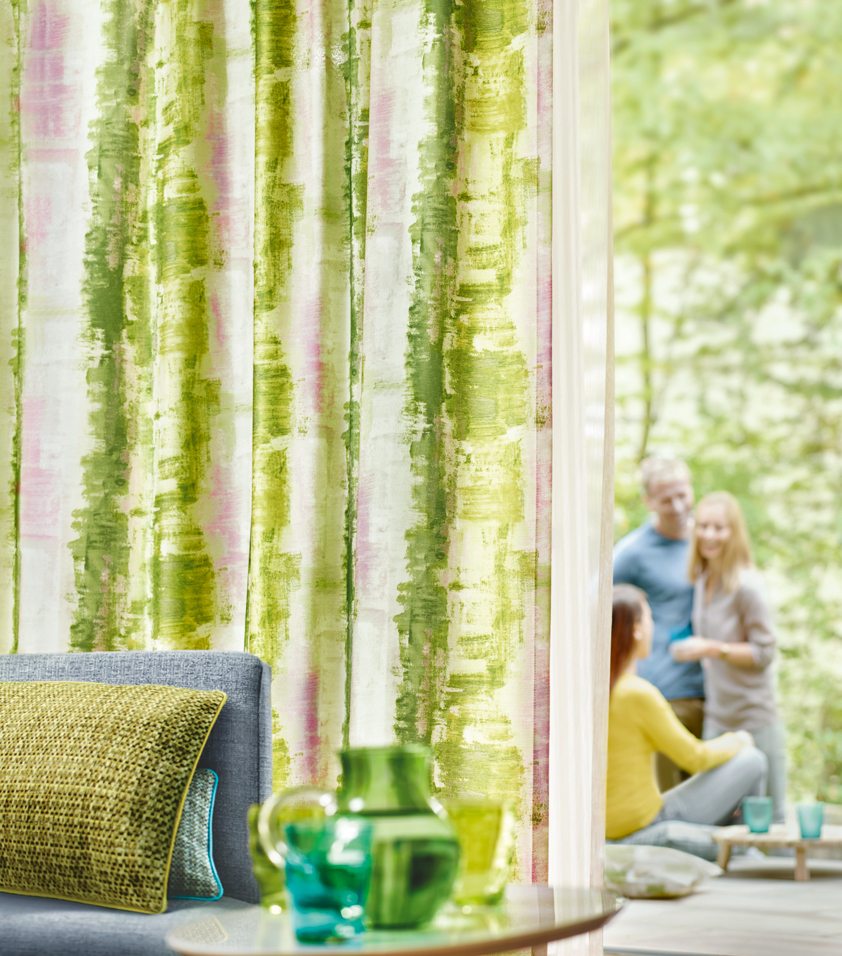 With soft brushstrokes combining to form artistic vertical stripes, this piece is like an impres-sionist painting on a canvas of gently flowing Panama fabric. Available in six colour combinations, from subtle ivory and sand or elegant blue and brown through to vibrant red and orange.