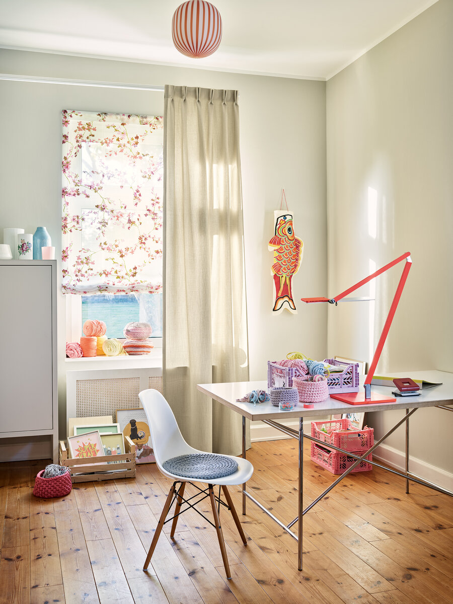 BAGHEERA – minimalist, natural and wonderfully comfortable. The three-dimensional texture is reminiscent of wickerwork structures and impresses with its soft flowing drape and excellent draping properties. In 16 balanced feel-good colours, BAGHEERA conjures up a smile on your face – and your living space. The easy-care plain colour fabric of the high quality and opaque version can be lined and for a cosy look we recommend the upright decoration. The clean look is defined by a high-quality hem and an inlaid weight band.