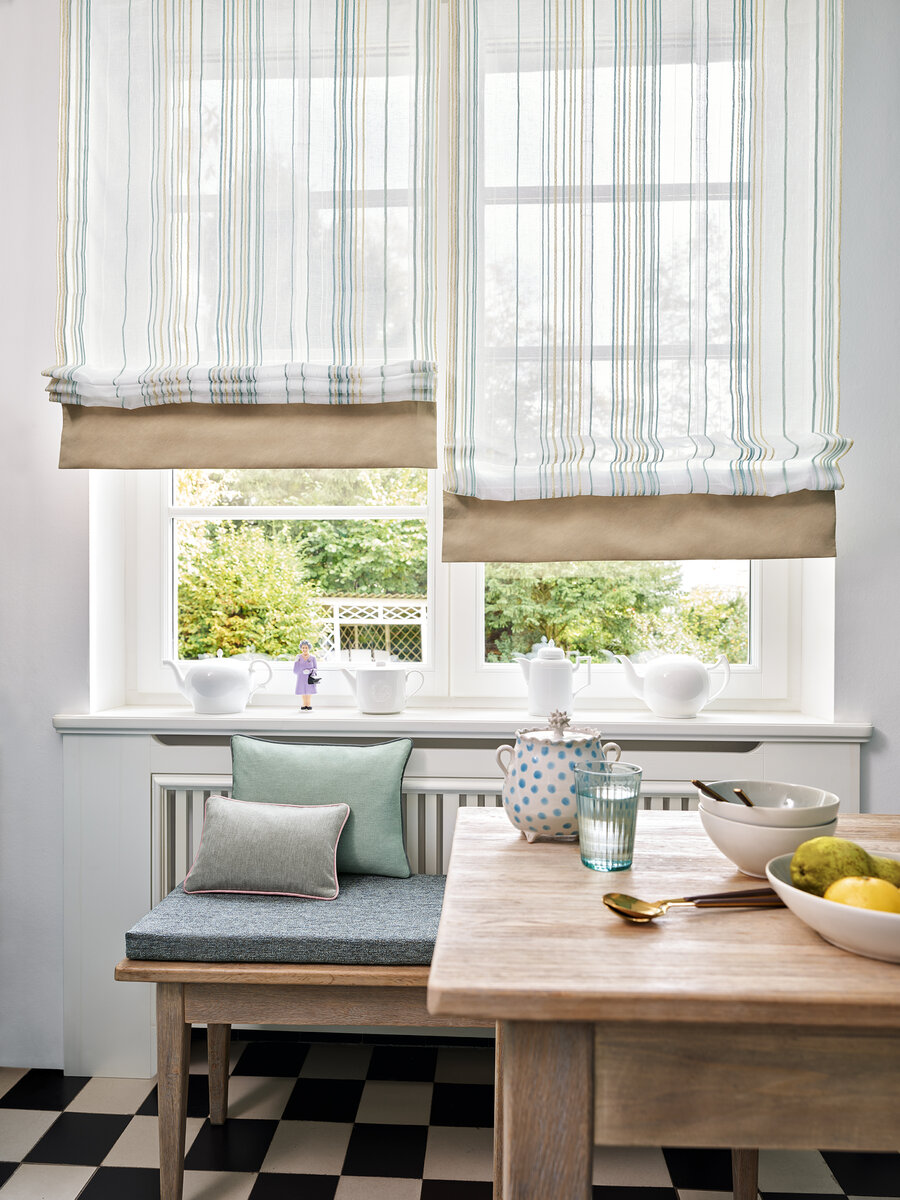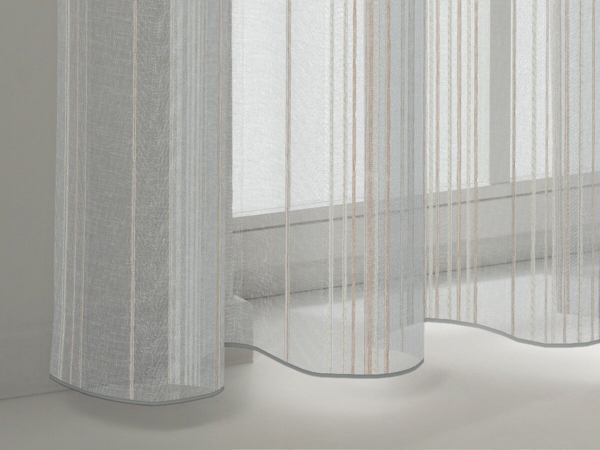 Rustic, natural and handCRAFTed. The fabric is liberally filled with narrow and wide stripes, harmonising perfectly with the transparent, linen-like base fabric. Available in neutral and balanced colour combinations. Floated threads enhance the fabric’s handmade characteristics and its appeal. This fabric makes a big impression.