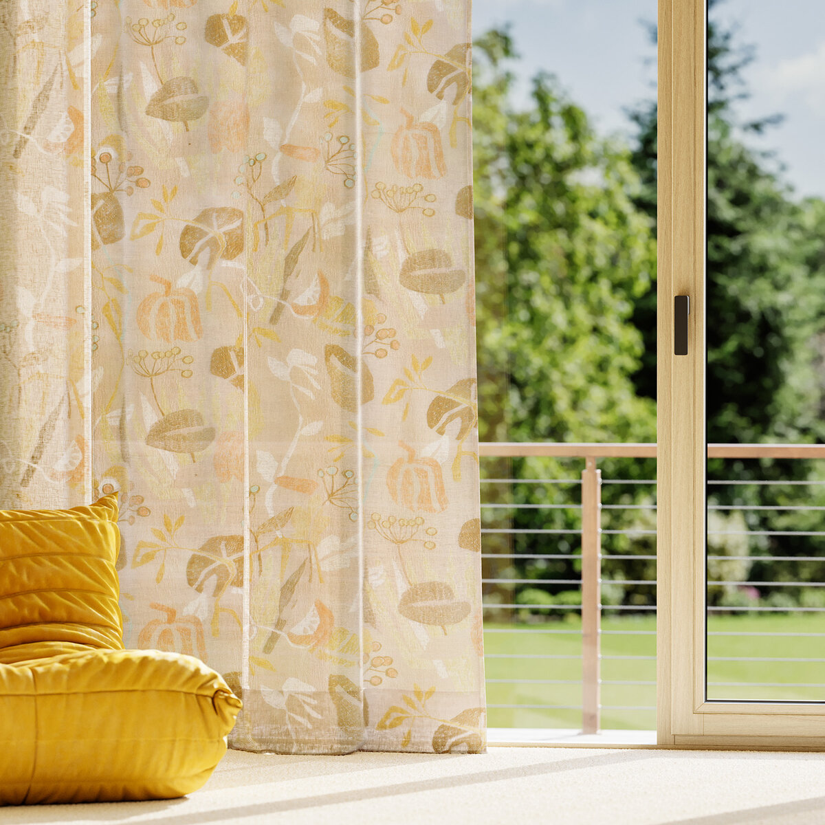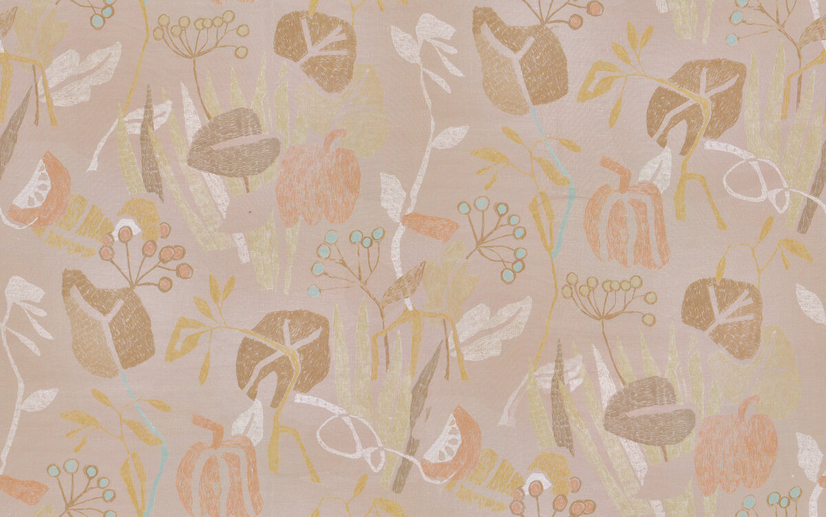 Anyone looking to immerse their rooms in nature would be well advised to go for the beautiful plain-weave linen fabric DIP INTO THE GREEN. The contemporary print on 100% linen shows a hand-drawn floral design with abstract leaves and fruits. The penciled hatching adds a particularly |unusual texture and harmonizes perfectly with the base fabric color – and can also be paired to great effect with the article PRETTY LINEN.