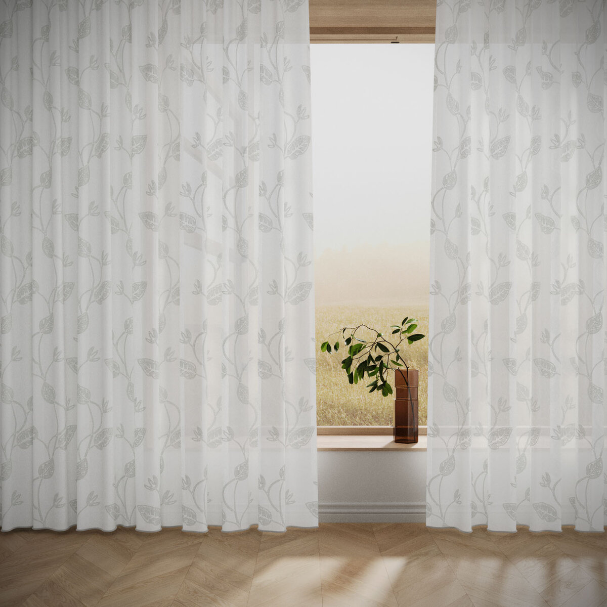 FIORE lets its embroidery take center stage. Intricate soutache detailing climbs across a soft ground, reminiscent of French craftsmanship with a modern twist. Voluminous yarns create dimension and character, while the color palette conveys natural elegance.