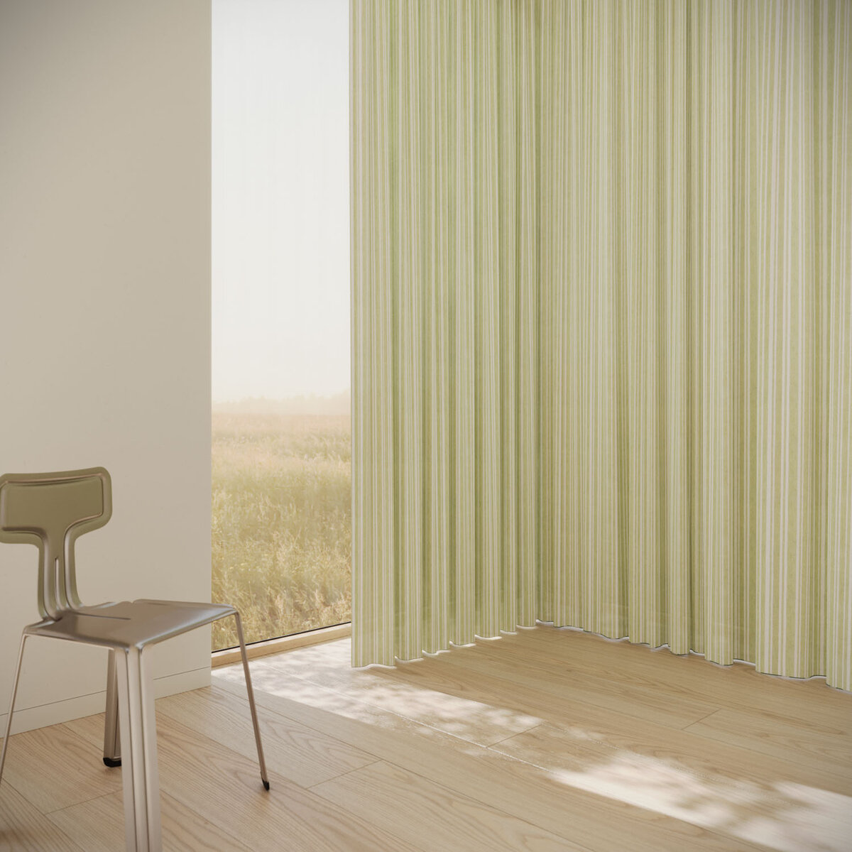 FRIZZANTE brings movement and rhythm through its lively stripe. Produced with solution-dyed technology, it delivers exceptional colorfastness, water and oil resistance (PFAS-free) and sustainable production with minimal water use. Ideal for sun-drenched windows, conservatories or breezy interior partitions - refreshing like a summer day yet enduring like a classic.
