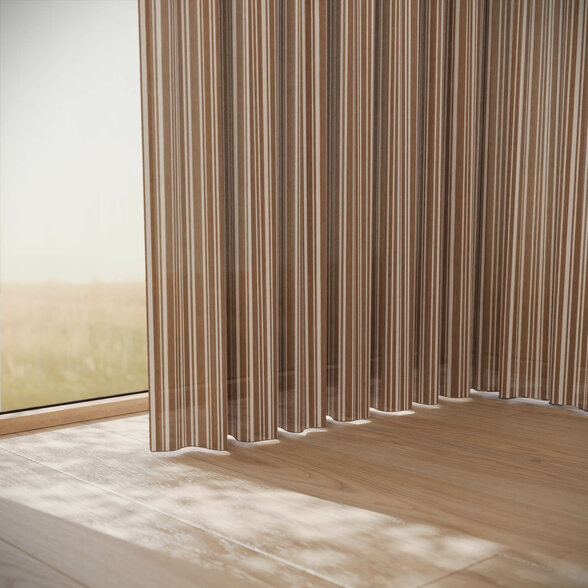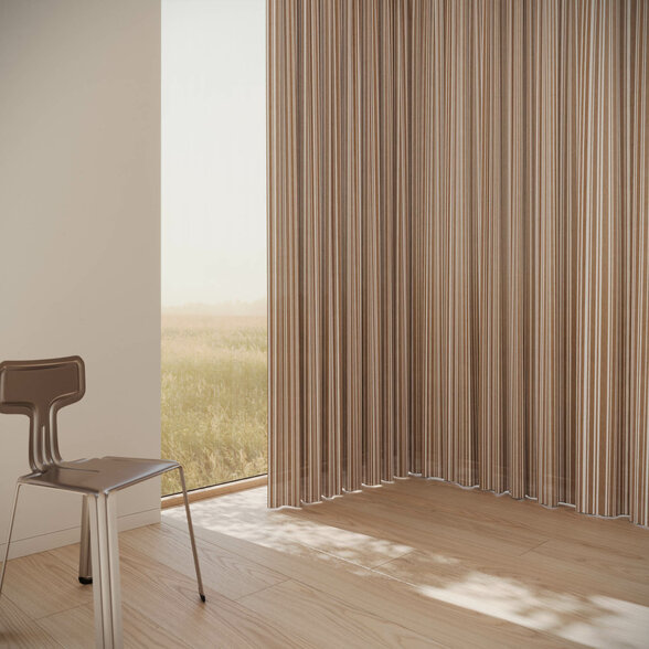 FRIZZANTE brings movement and rhythm through its lively stripe. Produced with solution-dyed technology, it delivers exceptional colorfastness, water and oil resistance (PFAS-free) and sustainable production with minimal water use. Ideal for sun-drenched windows, conservatories or breezy interior partitions - refreshing like a summer day yet enduring like a classic.