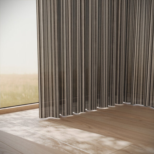 FRIZZANTE brings movement and rhythm through its lively stripe. Produced with solution-dyed technology, it delivers exceptional colorfastness, water and oil resistance (PFAS-free) and sustainable production with minimal water use. Ideal for sun-drenched windows, conservatories or breezy interior partitions - refreshing like a summer day yet enduring like a classic.