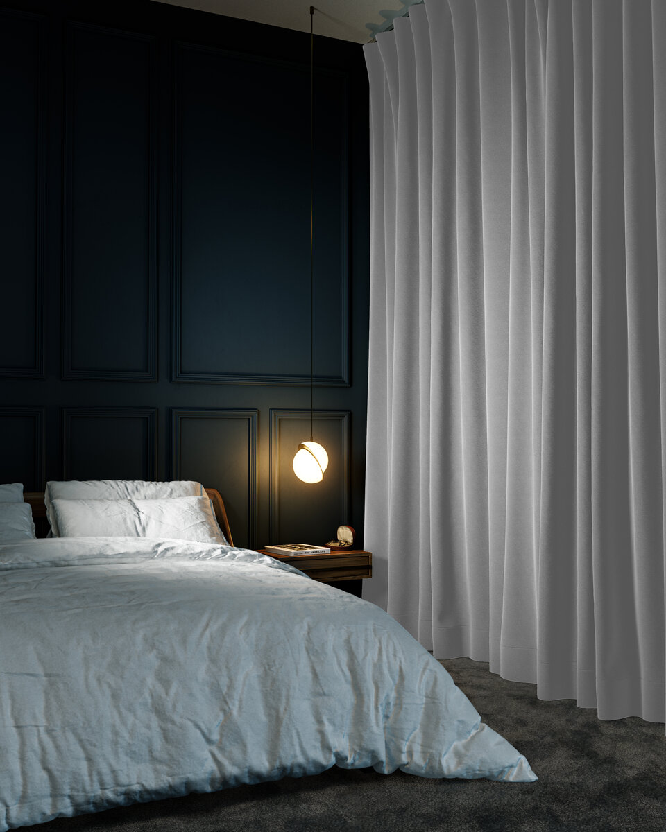 IMPULSE is a wonderful voluminous curtain fabric with sleep factor guaranteed. Thanks to its dimout character the prerequisites for restful sleep are ensured and its acoustic and thermal properties ensure a calm and cozy atmosphere. Sweet dreams!