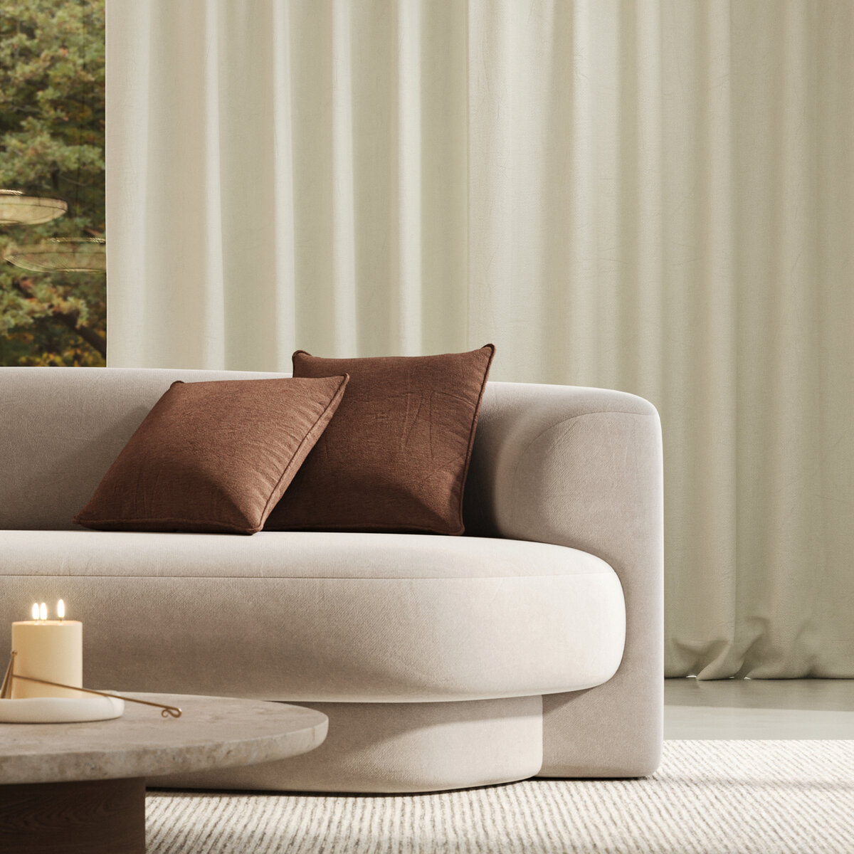 LILA is available in Pure White, Chalk, Camel, Hazelnut, Sand, and Burnt Sienna. These inbetween curtains are a sensory experience in six earthy tones. Extremely soft in both texture and drape, it is an absolute dream to decorate with. Made from 100% natural materials, LILA is also an eco-friendly fabric. The high-quality linen fiber is a natural raw material, grown in Europe without artificial irrigation, and guaranteed as being free from genetic modification. Lyocell is also completely biodegradable and is one of the most sustainable viscose fibers, with outstanding properties. With its smooth surface and silky texture, this fiber provides the warmth of virgin wool and the freshness of linen. As it absorbs more moisture than cotton, it also helps maintain a healthy indoor environment.