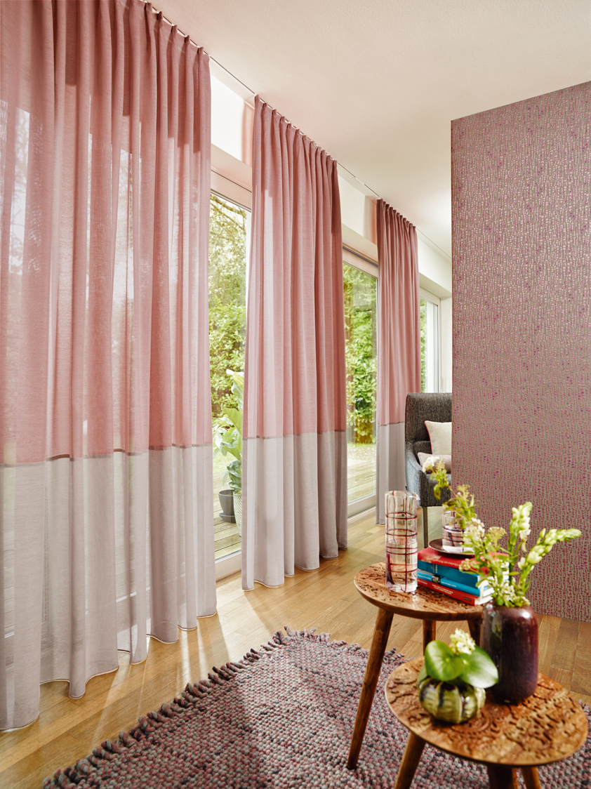MANOLO creates atmosphere and provides privacy at the same time! Its translucent qualities let sunshine into the room while providing a pleasant level of privacy. The innovative manufacturing process means that this room-height textured fabric is extremely soft and has a relaxed linen-like appearance. It is made of easy-care polyester and is available in a range of soft tones, including brick red, denim blue, agave blue and modern stone hues.