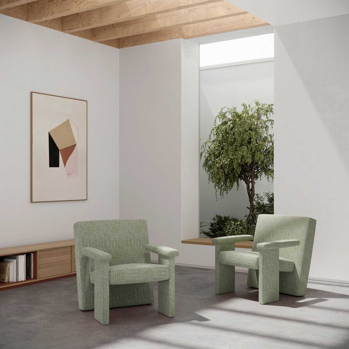 With our MATCH POINT upholstery fabric, everything simply matches up. The three-dimensional texture harmonizes with the 28 richly contrasting colors, while the halogen-free fabric is in keeping with our commitment to the environment. The graphite backing meets our requirements for flame-retardant fabrics, and the fully synthetic yarn provides the ideal easy-care experience. And, of course, it goes with any interior, be it vintage, Bauhaus, or country house.