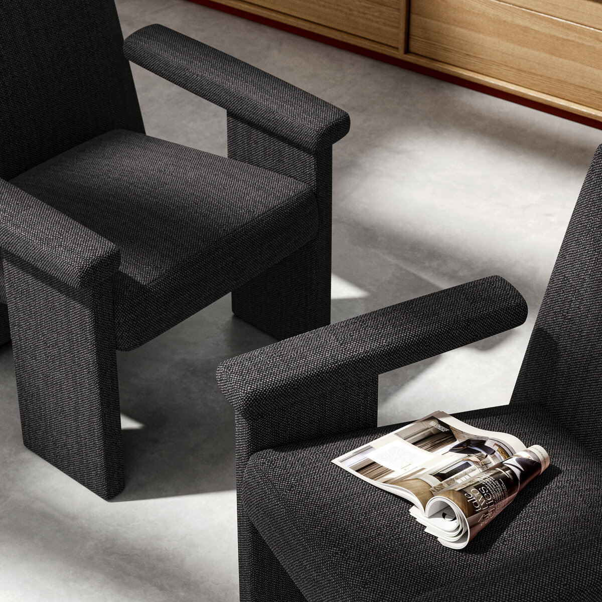With our MATCH POINT upholstery fabric, everything simply matches up. The three-dimensional texture harmonizes with the 28 richly contrasting colors, while the halogen-free fabric is in keeping with our commitment to the environment. The graphite backing meets our requirements for flame-retardant fabrics, and the fully synthetic yarn provides the ideal easy-care experience. And, of course, it goes with any interior, be it vintage, Bauhaus, or country house.