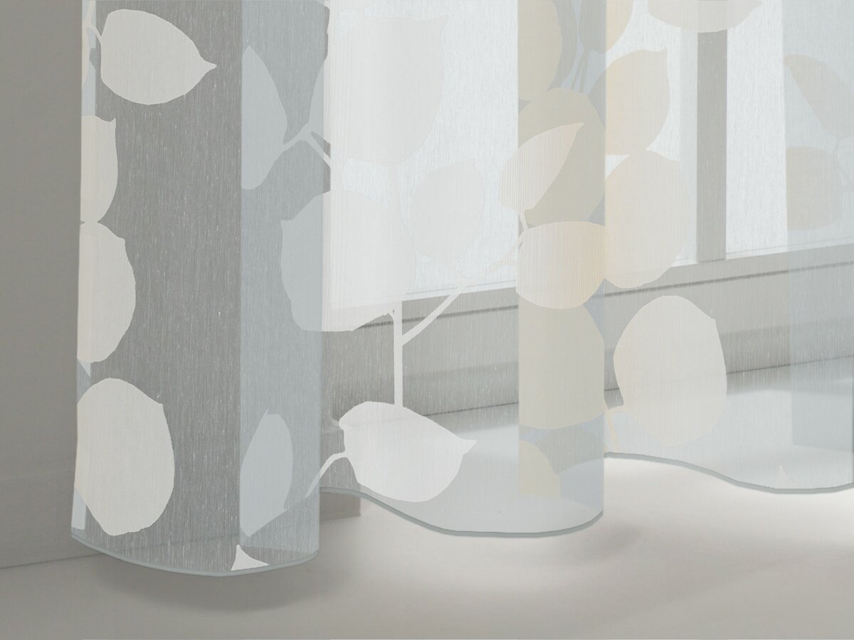 MERINA in orange/pink/cement and cream/beige/grey on a light background makes it seem like the sun has come to say hello to you in person, while cement/grey/beige on a smoky background gives a more mature aesthetic. The gradient of three harmoniously woven thread colours and the colourfully nonchalant irregularity on the modern tendril design make the floral Devoré stand out.