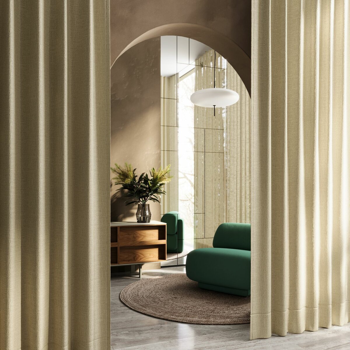 Meringue balances a soft, textured surface with a blend of 65% polyester and 35% linen. Its subtle mélange effect and playful color palette, ranging from natural tones to cheerful accents, make it a perfect choice for creating cosy, stylish spaces.