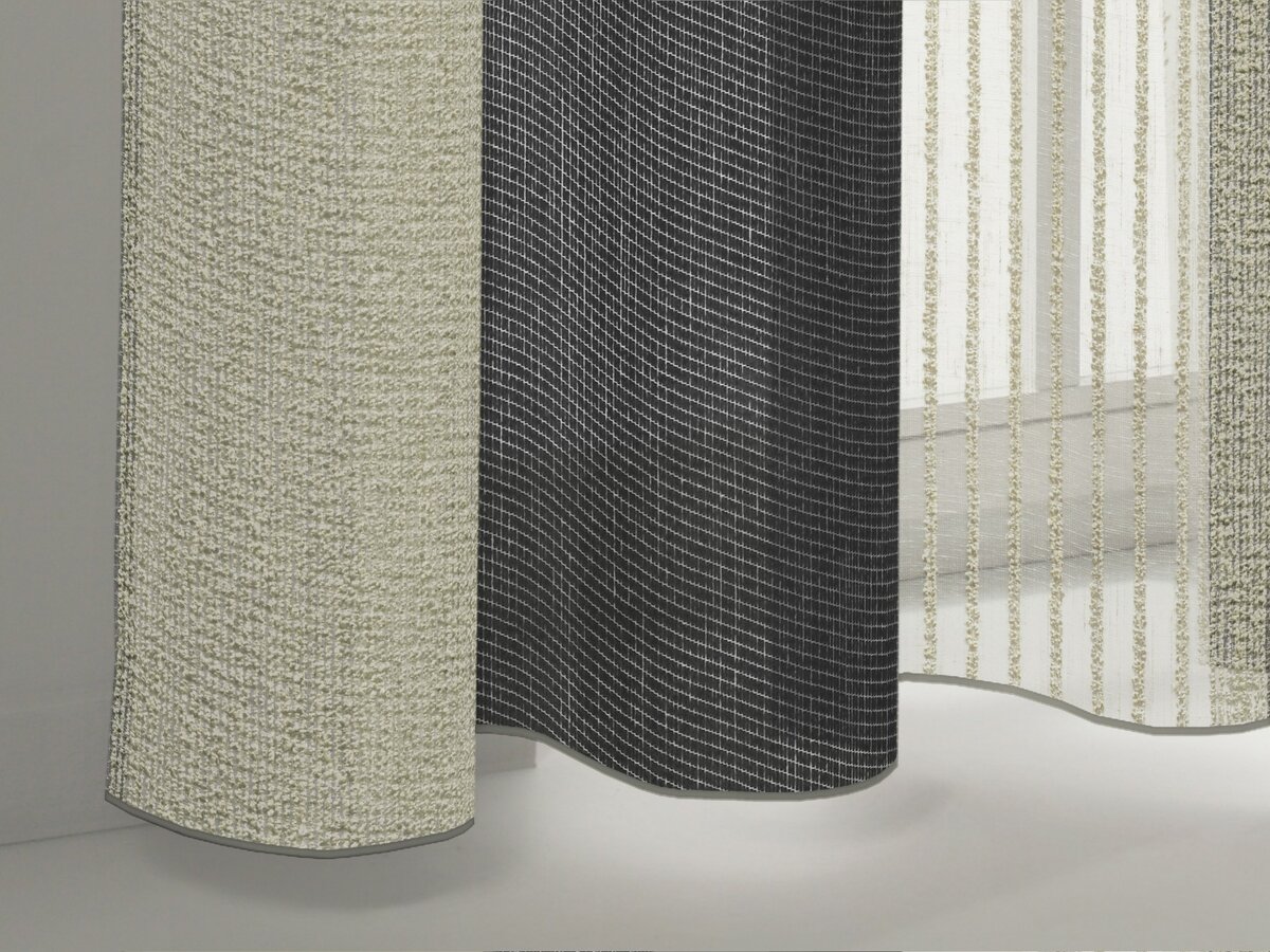Your MOMENTUM when it comes to outstanding quality, grace and clarity. Surrounded by a large pattern of stripes and squares that perfectly complement the natural background in texture and thickness. A drapery that makes a stunning impact and a statement – and tastefully adds an understated note to your overall ambience.