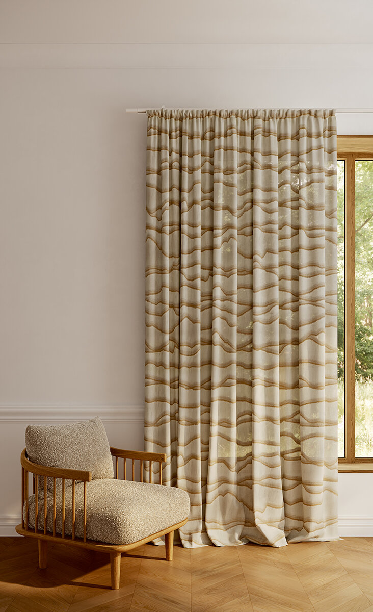 MONTARA blends craftsmanship with airy, alpine charm. Jute fil coupé waves echo mountain landscapes, rustic yet refined. The contrast between natural jute and a delicate transparent ground creates a balance of authenticity and elegance. In shades from winter white to soft linen, MONTARA brings nature home — distinctive and warm.