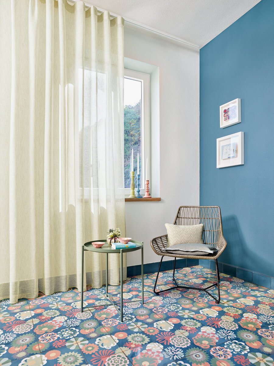 Calm down with NARAN. The permanently flame-retardant synthetic fibres boast a natural-looking mesh structure in its look and feel like linen. Authentic, casual and urban in 20 exciting colour schemes, ranging from tone-on-tone to high-contrast.